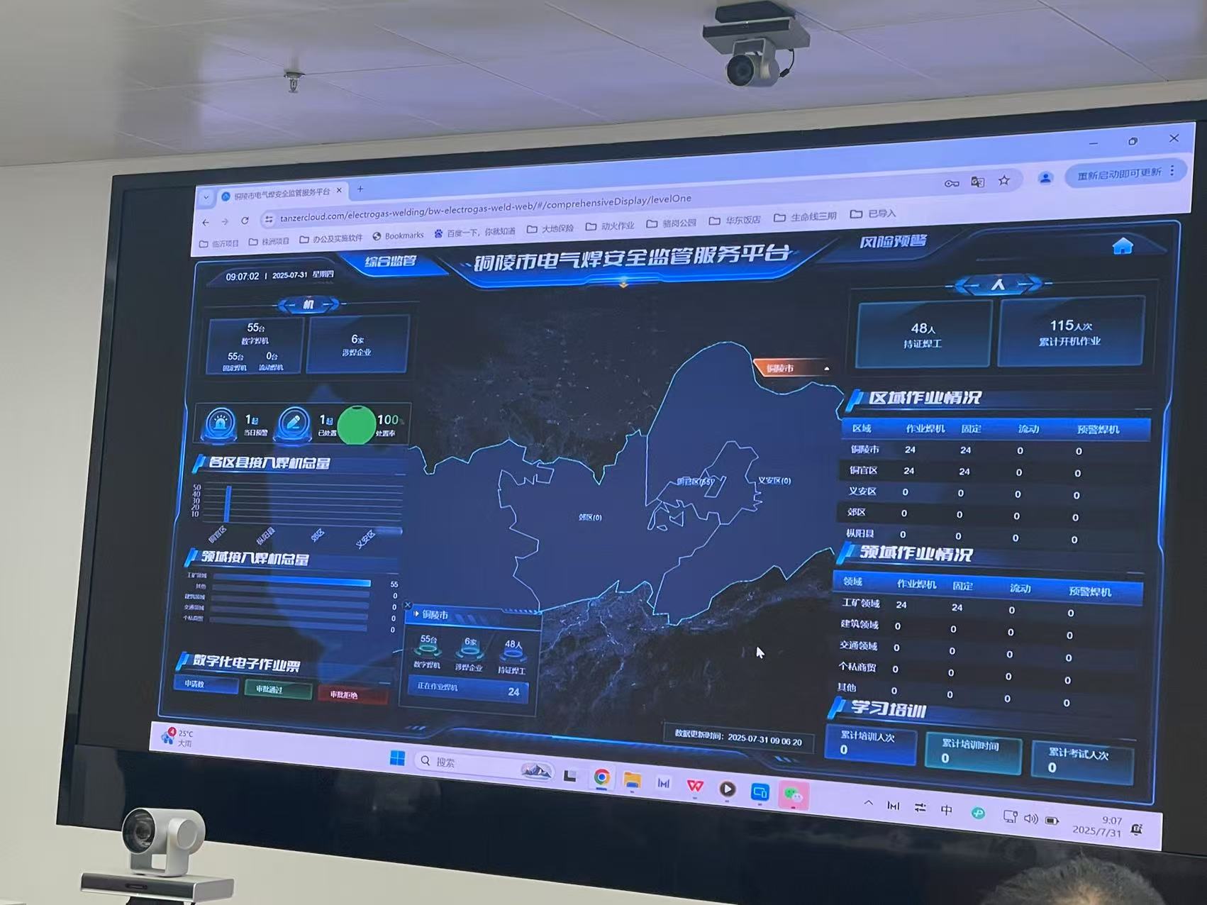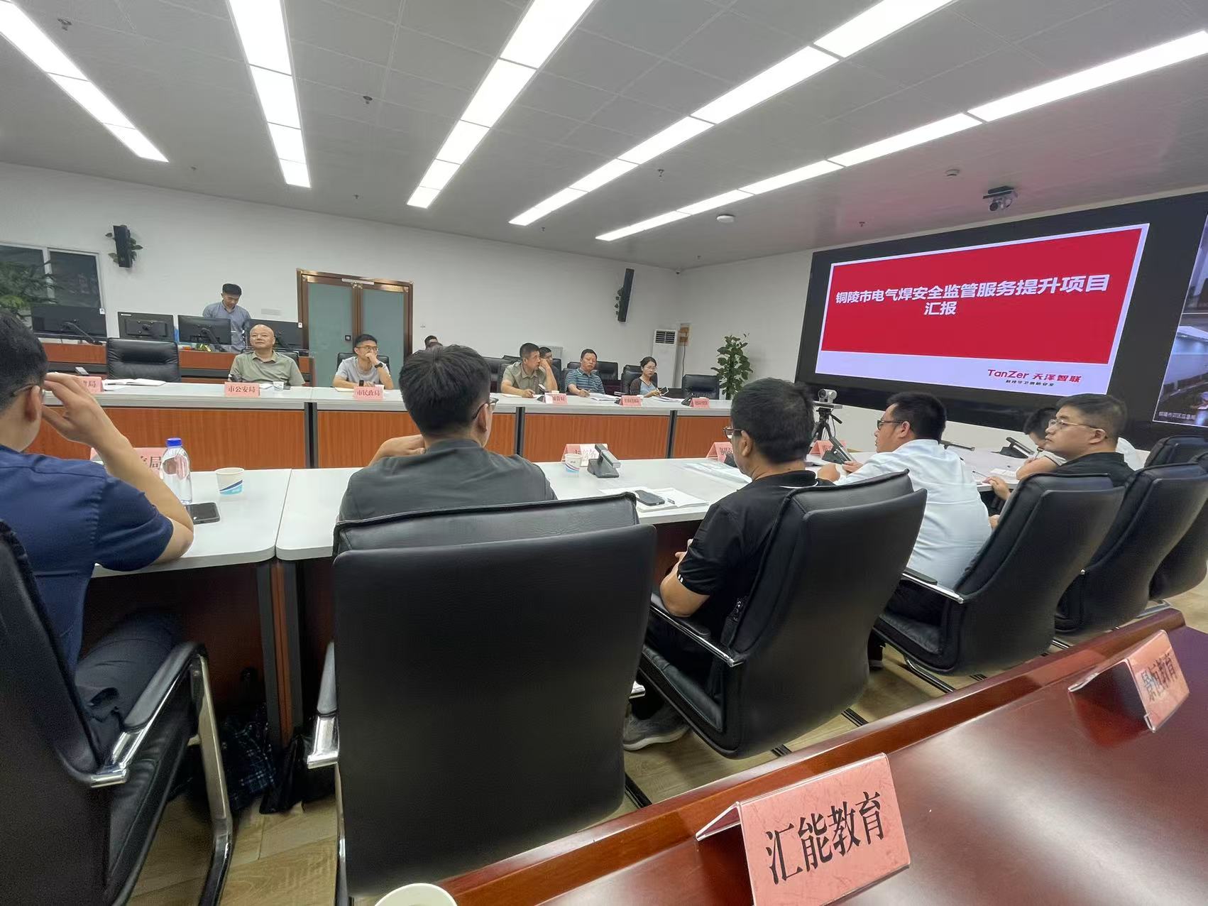2025年7月31日上午8:30,在铜陵市应急管理局三楼应急指挥部大厅召开电焊机“加芯赋码”部署工作会议,会议由市应急局张森林副局长主持,参会的有市住建局、市市场监督管理局、市消防救援局、市公安局、市商务局、市民政局、市卫健委、市文旅局、市城管局相关业务科室负责同志;市应急局综合科、危化科、矿山科、工贸科、安教中心负责同志;安全培训机构和施工单位(天泽联)、铜陵有色的相关同志。铜官区应急局、义安区应急局、郊区应急局、枞阳县应急局进行同步直播。电焊机“加芯赋码”自8月1日起正式实施安装,计划于8月15日安装完毕。